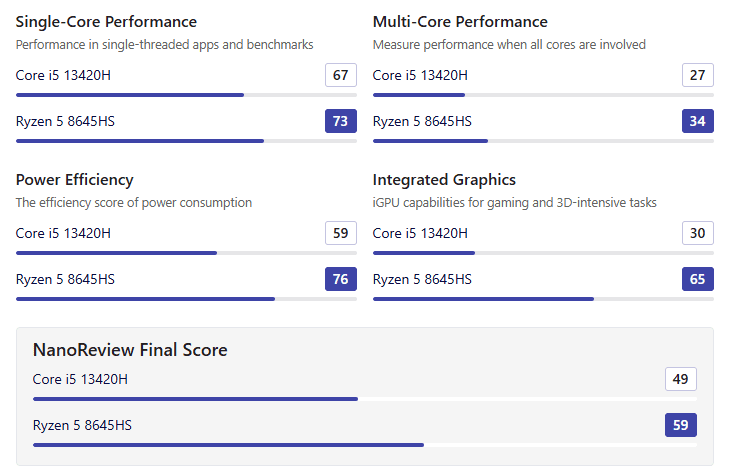 A laptop a combos, 12 v.magos Ryzen 5 8645HS CPU-nak, az NVIDIA GeForce RTX 4050 (6GB GDDR6) GPU-nak és a 16GB DDR5 memóriának köszönhetően a hardverigényes feladatokra, játékok futtatására, videovágásra és grafikai munkára egyaránt optimális. Processzorának teljesítménye erősebb egy 13. generációs i5-13420H-nál is.